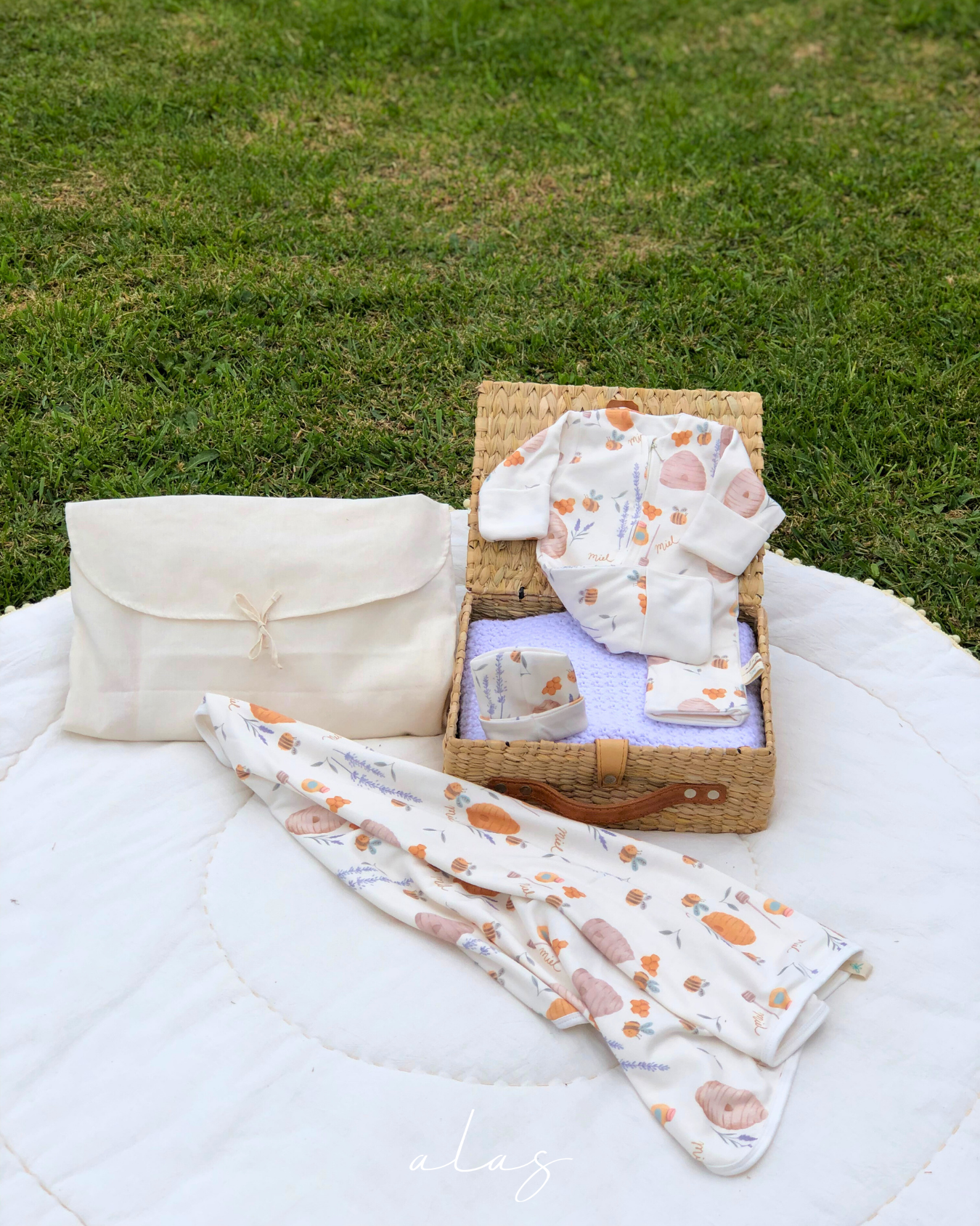 Porque cada comienzo merece un abrazo lleno de amor, nuestro set de Primera Muda esta diseñado para darle al bebé una cálida bienvenida al mundo exterior. Cada prenda y accesorio ha sido creado en doble capa de algodón, suave, transpirable y seguro para la piel del recién nacido.  Incluye: